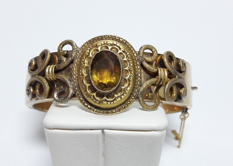 Bransoleta wykonana z brązu, złocona 14 karatowym złotem.