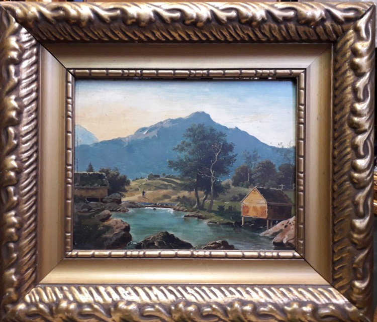 Obraz olejny na desce mahoniowej.