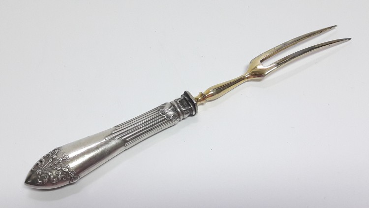 Stareńki widelec środka stołu, do serwowania wędlin.