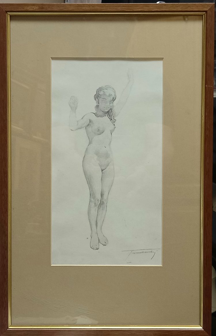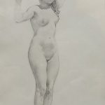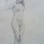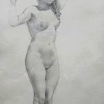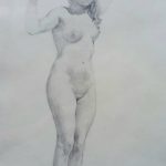 Subtelny akt młodej kobiety – szkic ołówkiem na papierze.