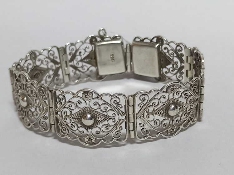Subtelna bransoleta misternie wykonana ze srebrnego filigranu.