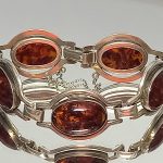 Bransoleta z lat 60,70-tych XX wieku, srebro z bursztynami.