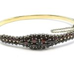 Bransoleta typu bangle, wykonana ze złoconego srebra i granatów.