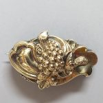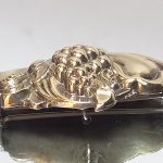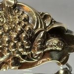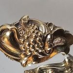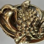 Wypukły ornament – motyw z kiścią winogron. Zdobienia tłoczone i ręcznie cyzelowane.
