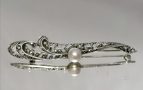 Misternie wykonana w srebrze, ozdobiona markazytami