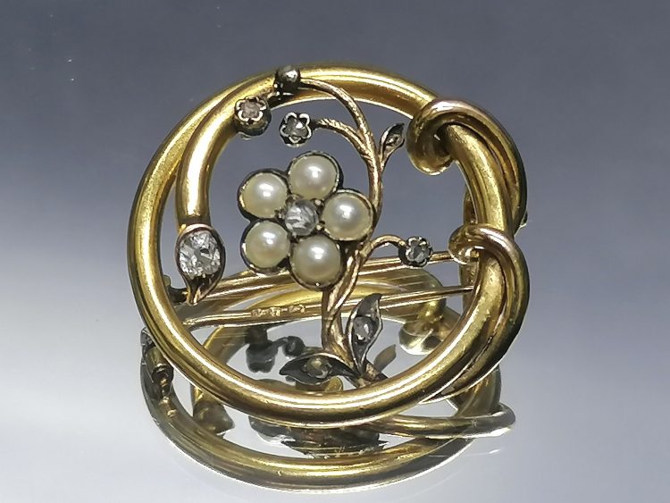 5 pereł i 5 diamentów w starym szlifie o łącznej masie 0,235ct.