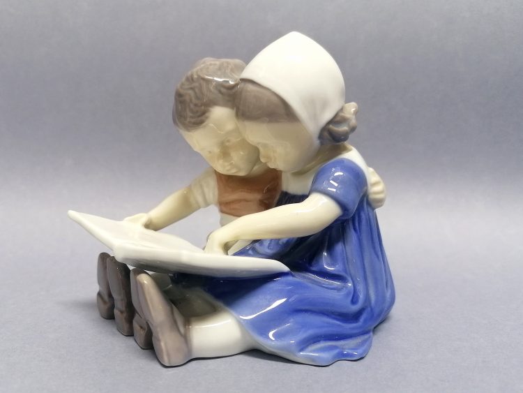 Urocza figurka do kolekcji – para siedzących dzieciaczków, zaczytanych w książeczce…