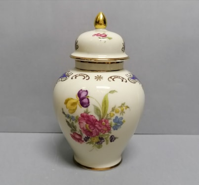 Klasyczna forma w kształcie urny z wysoką pokrywą.