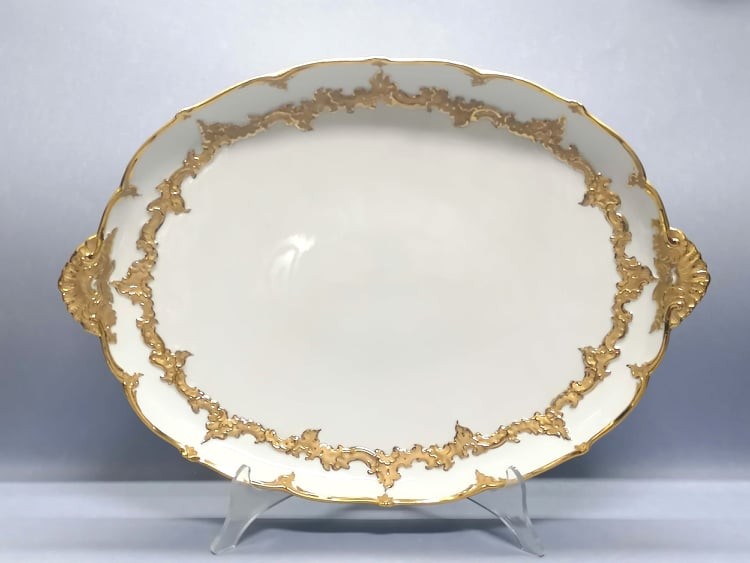 Śnieżnobiała porcelana bogato złocona.
