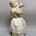 Śliczna figurka – wiejska dziewczynka z owieczką w ramionach.