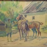 Najchętniej przedstawiał pejzaże, konie, sceny rodzajowe.