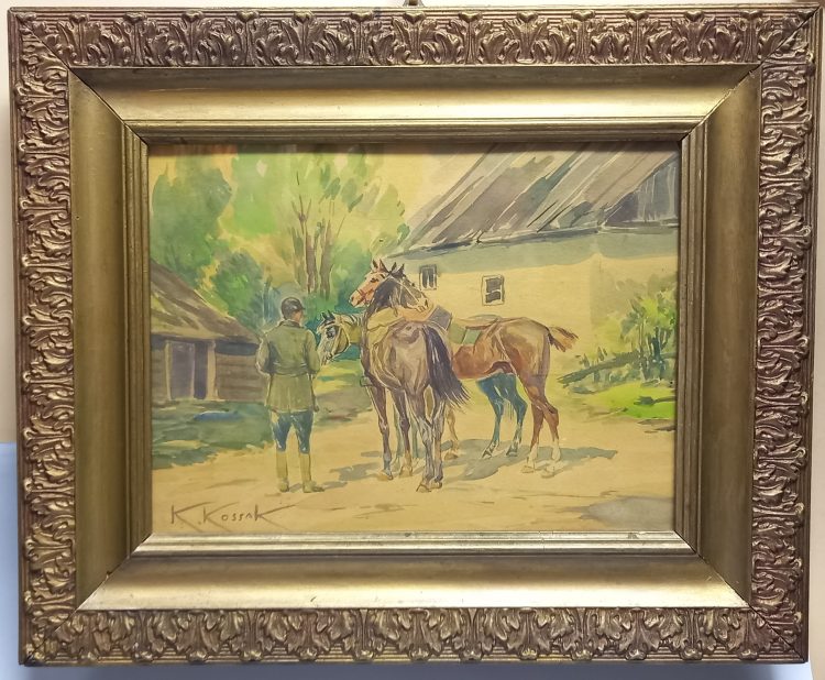 Obraz sygnowany w lewym dolnym rogu: „K.Kossak”.