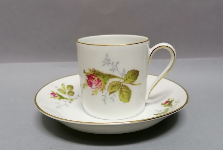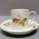 Śnieżnobiała, delikatna porcelana dekorowana barwną kalkomanią – motyw róży.
