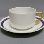 Filiżanka o dość prostej formie z suto złoconym uchwytem.