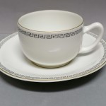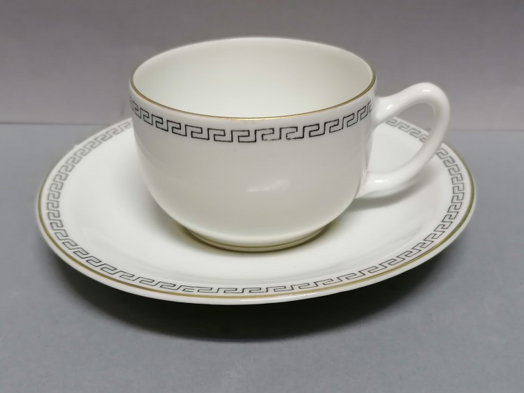 bordiurą z geometrycznym wzorem. Krawędzie złocone.