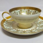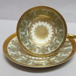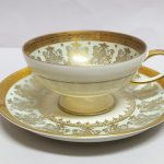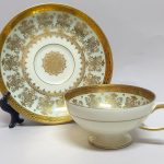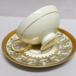 Delikatna, cieniutka porcelana w kremowym kolorze, bogato dekorowana