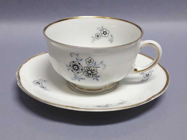 na krawędzi talerzyka i wokół podstawy filiżanki.