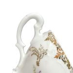 Biała, delikatna porcelana przepięknie dekorowana drobnymi reliefami, złoceniami