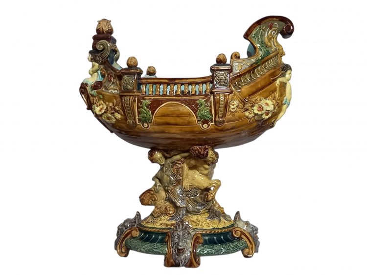 Galeon – żardiniera, majolika, Wilhelm Schiller & Sohn