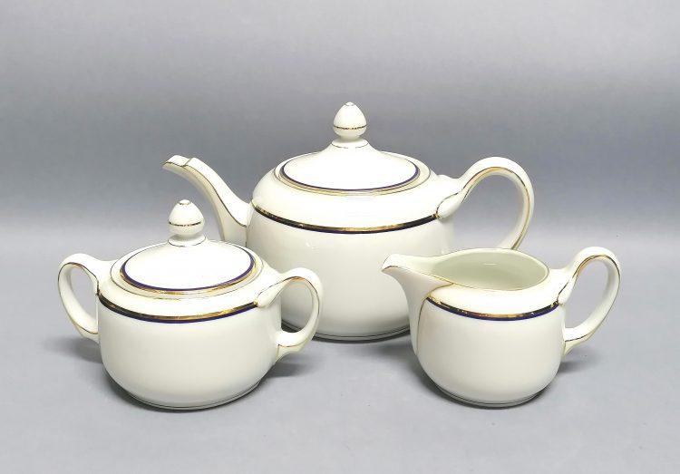 Śnieżnobiała, delikatna porcelana subtelnie zdobiona kobaltem i złoceniami