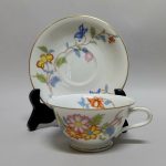 wysokość filiżanki 5cm, średnica 9,5cm, średnica spodka 13,5cm. Pojemność 150ml.