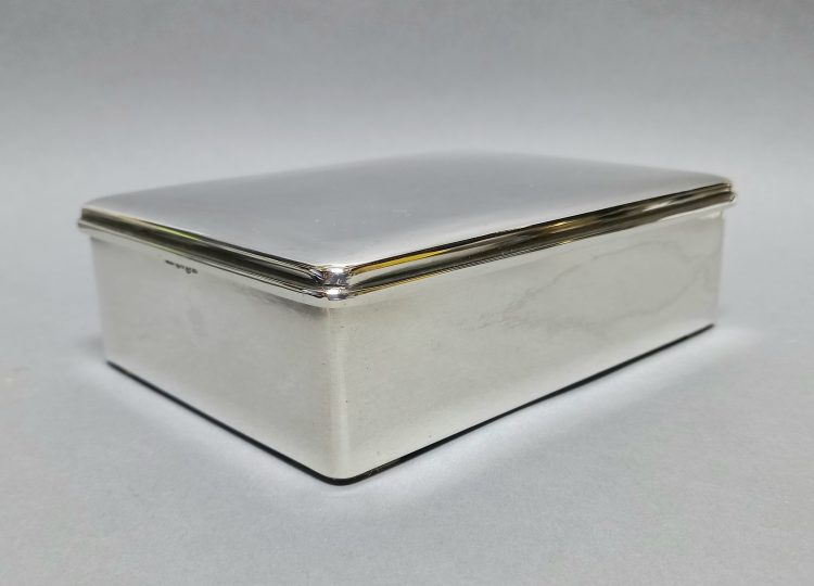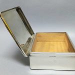 Srebro próby 830, wkład z drewna mahoniowego.