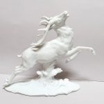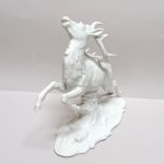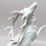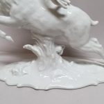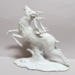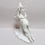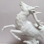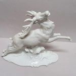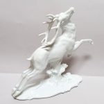 Porcelana biała, szkliwiona. Realistyczna forma – biegnący jeleń w dynamicznej pozie,