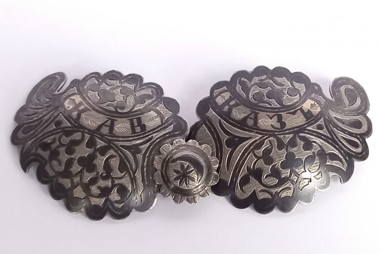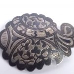 Klamra do pasa kaukaskiego – dawniej, a dziś – przerobiona na dwie broszki.