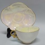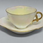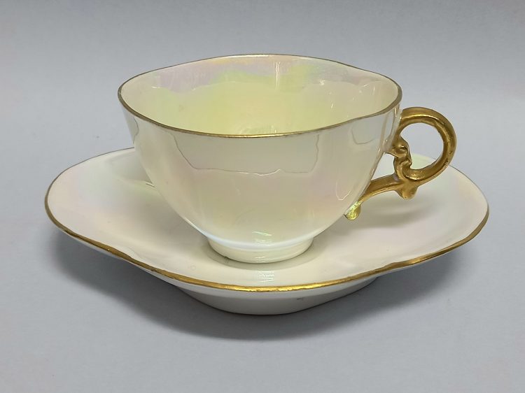 Filiżanka i spodek o nieregularnej, owalnej formie – jak kwiat czy też