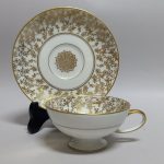 Na dnie filiżanki i w lustrze spodka złota rozetka.