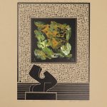 Powyżej pracy autorska adnotacja ołówkiem: ” Andrzej Neskoromny dla Henryka Pawelskiego w Galerii Adi ART 8.III. 2002 r.”