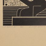 po lewej: „W galerii 35” „2/25”, po środku: „linoryt 2002 r”, po prawej: „(A.P.)” „Henryk Płóciennik”.