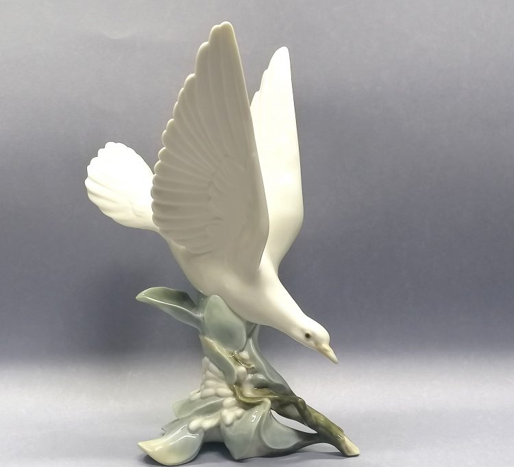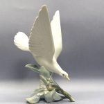Okazała figurka przedstawiająca lądującą mewę z rozpostartymi skrzydłami.