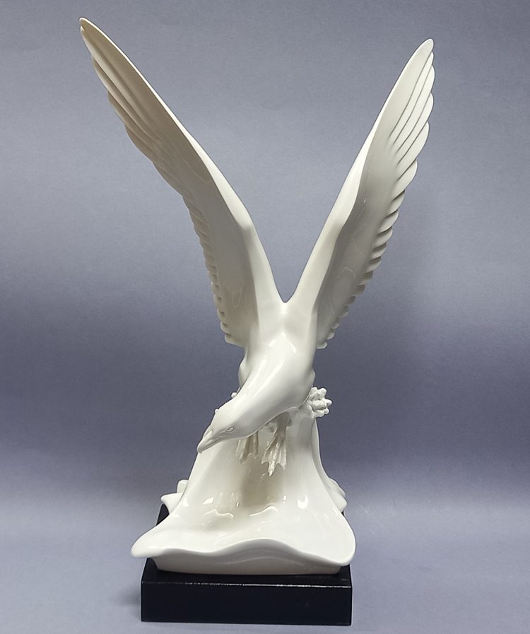 Śnieżnobiała, szkliwiona porcelana przedstawia imponującą figurę