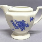 Śnieżnobiała porcelana dekorowana na brzegach charakterystycznym reliefem.