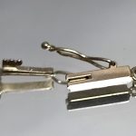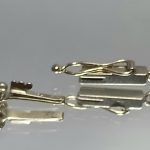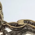 Złoto żółte próby 750, pokryte srebrem. Łańcuszek ze złota białego 750.