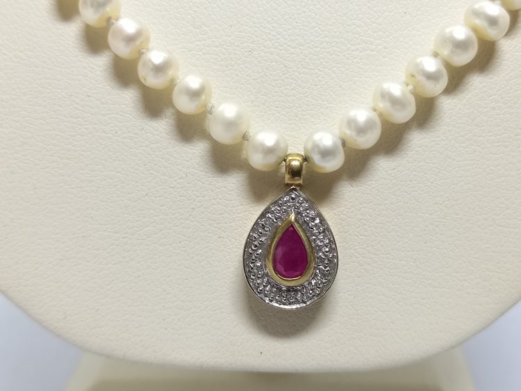 Zawieszka w kształcie kropli (gruszki) z rubinem o masie 0,4ct