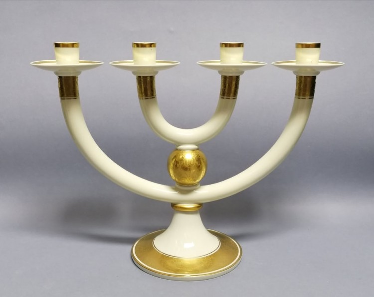 złotej kuli. Kandelabr, choć czteroramienny nawiązuje kształtem do menory.