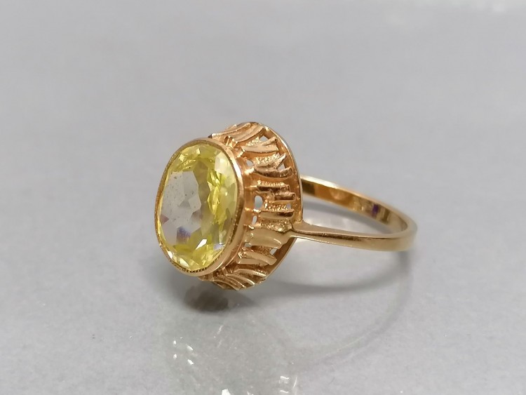 Pierścionek z cytrynem, złoto 583, Rosja