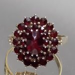 Piękny pierścionek dla miłośniczek biżuterii z granatami.