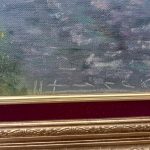 Obraz pięknie oprawiony, rama drewniana z nakładką gipsową, wewnętrzny kant aksamitny.