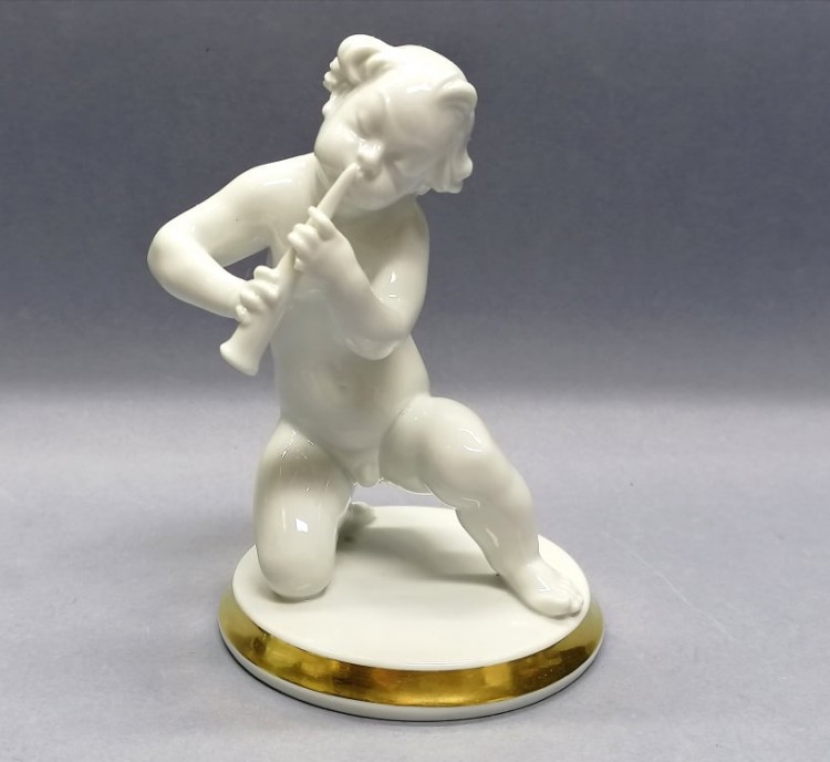 Kolekcjonerska figurka – urocze putto grające na flecie.