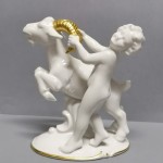 Dekoracyjna figurka – urocze putto z koziołkiem.