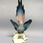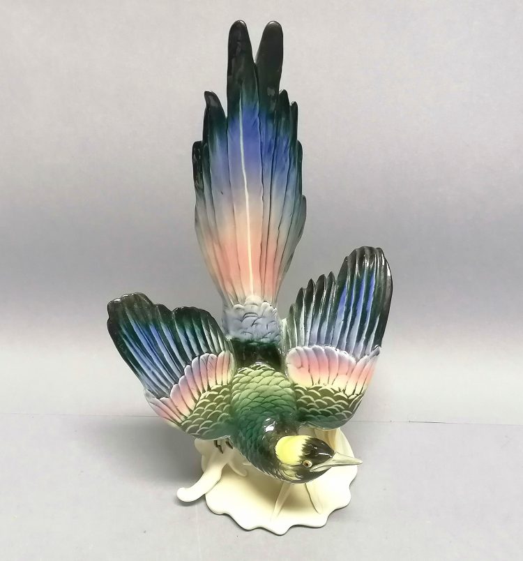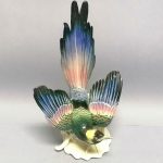 Kolekcjonerska figurka – barwny, rajski ptak z rozpostartymi skrzydłami.