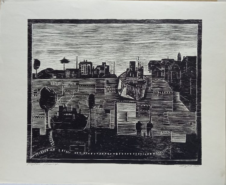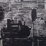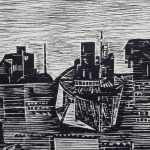 „Przystań” – drzeworyt na papierze.