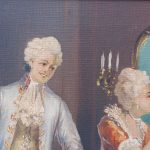 Romantyczna scenka rodzajowa: w stylowym wnętrzu kawaler czekający na damę siedzącą