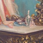 Stan płótna bardzo dobry,, w ozdobnej ramie na narożu małe ubytki nakładki gipsowej.