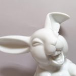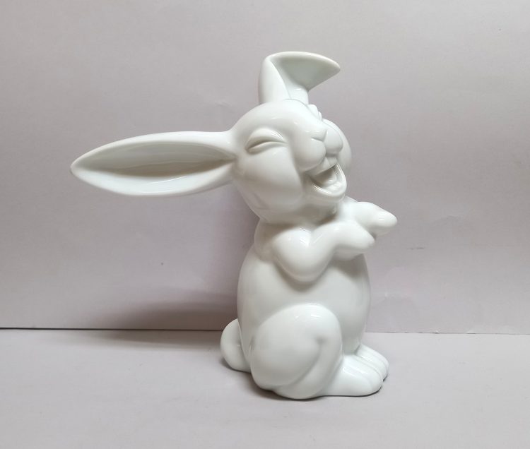 Zabawna figurka zatytułowana „Śmiejący się zając” wykonana według