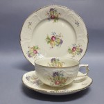 Kremowa, delikatna porcelana. Uroku dodaje jej subtelna, kwietna kalkomania.