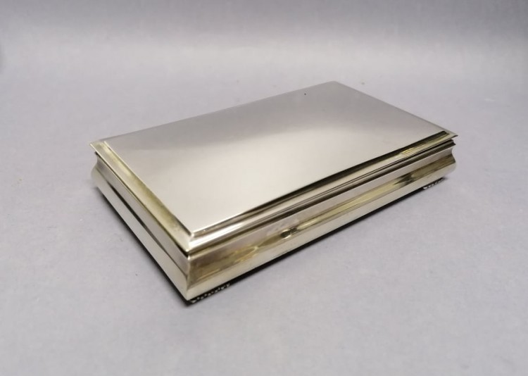 Srebro próby 830, wkład z drewna mahoniowego.